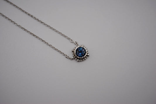 Alexandrite Necklace: Round Cut, Bezel, Silver, Cable Chain