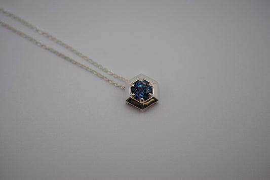 Alexandrite Necklace: Round Cut, Silver Hexagon Setting, Adjustable Cable Chain