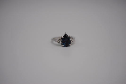 Alexandrite Ring: Pear Cut, Diamond Melee, White Gold