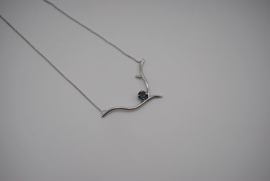 Alexandrite Necklace: Twig, Round Cut, Rhodium Finished, Cable Chain