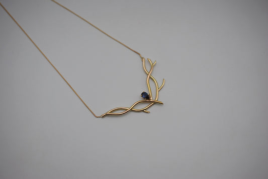 Alexandrite Necklace: Branching Nest, Pear Cut, Yellow Gold, Rounded Box Chain