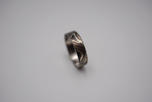 Mokume Gane Ring Band: Silver, Copper, and Shibuichi, 5mm Width