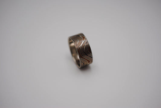 Mokume Gane Ring Band: Silver, Copper, and Shibuichi, 7mm Width