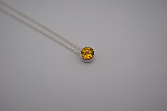 Birthstone Necklace: Round Citrine, Silver Bezel, on Cable Chain