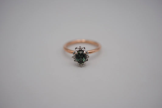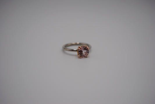 Tourmaline Ring: Round Cut, White Gold Band, Rose Gold Double Prong Setting