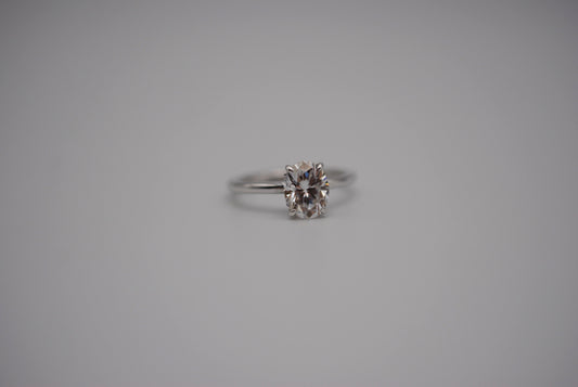 Moissanite Ring: Oval Cut, White Gold, Filligree Prong Setting