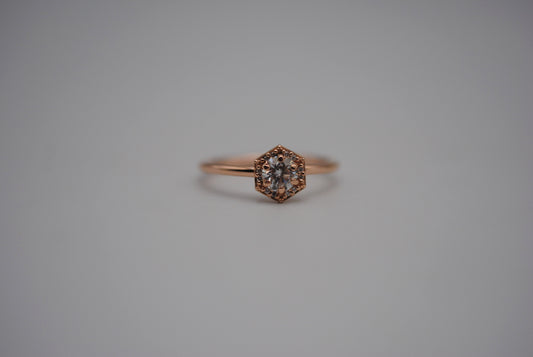 Moissanite Ring: Round Cut, Hexagon Diamond Halo, Rose Gold