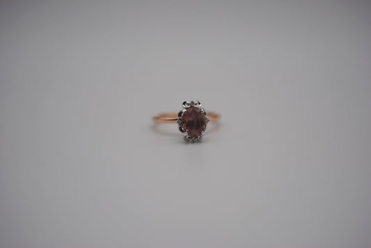 Malaia Garnet Ring: Oval Cut, Rose Gold Fill Band, White Gold Vintage Diamond Setting