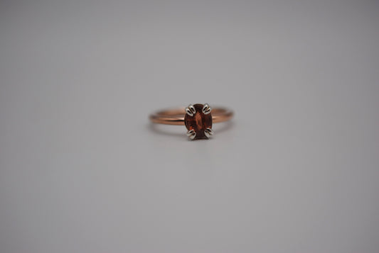 Garnet Ring: Oval Cut, Rose Gold Fill, Double Prong Silver Setting