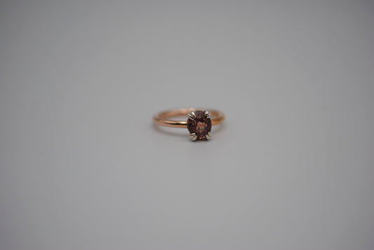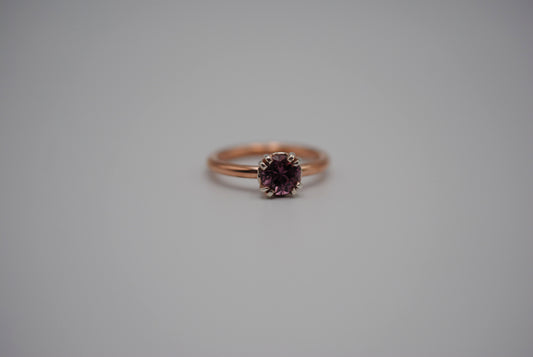 Malaia Garnet: Round Cut, Rose Gold Fill Band, Silver Double Prong Setting