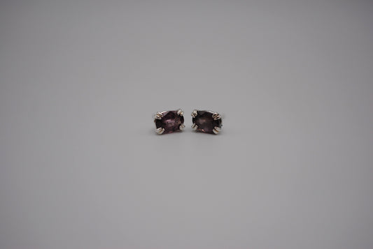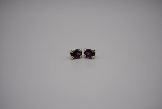Garnet Post Earrings: Oval Cut, Rhodolite, Silver, Double Prong Setting