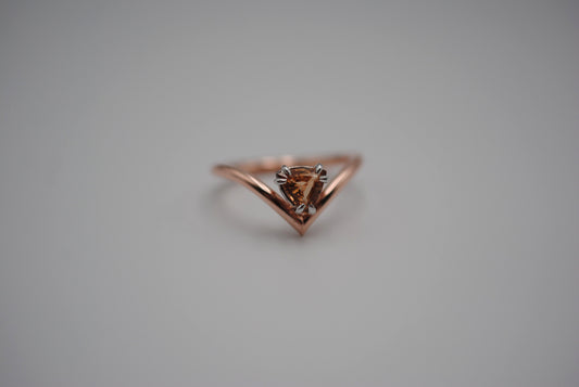 Garnet Ring: Trillion Cut, Rose Gold Fill Chevron Band, White Gold Setting