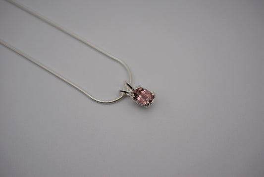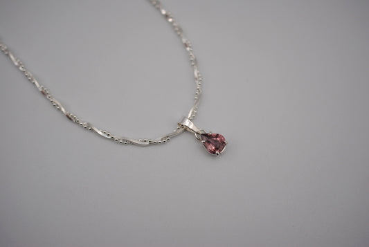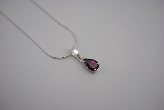 Rhodolite Garnet Necklace: Pear Cut, Silver Setting, Snake Chain