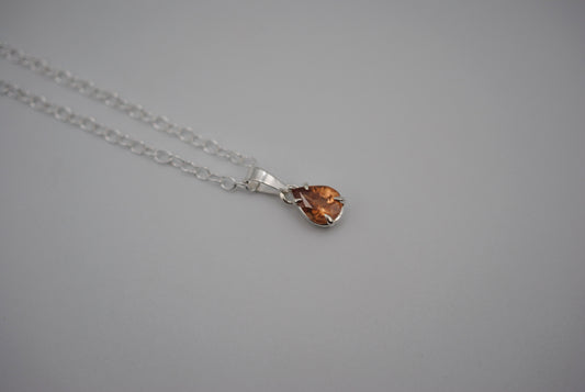Malaia Garnet Necklace: Pear Cut, Silver Setting, Cable Chain