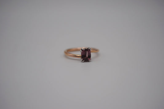 Malaia Garnet Ring: Emerald Cut, Rose Gold Bypass Band, White Gold Setting