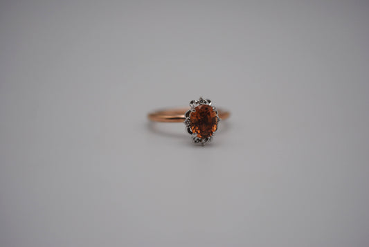 Garnet Ring: Oval Cut, Rose Gold Fill Band, White Gold Vintage Diamond Setting