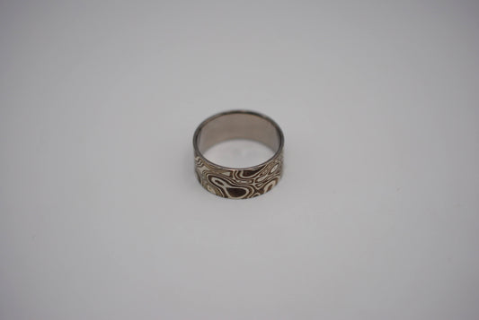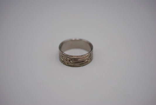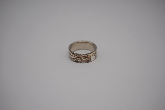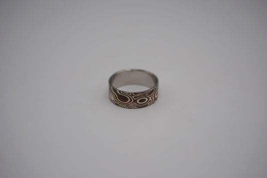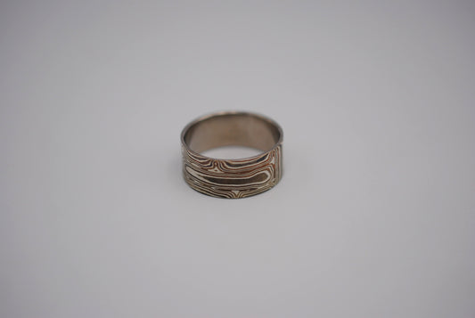 Mokume Gane Ring Band: White Gold, Yellow Gold, Rose Gold, & Silver, 7mm Width