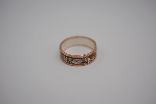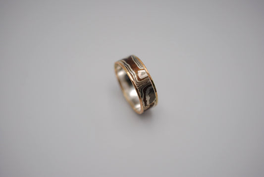 Mokume Gane: Silver, Copper, and Shibuichi Medium Ring