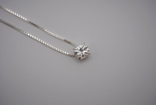 Birthstone Necklace: Round Cubic Zirconia, Silver Prong Setting, Adjustable Chain