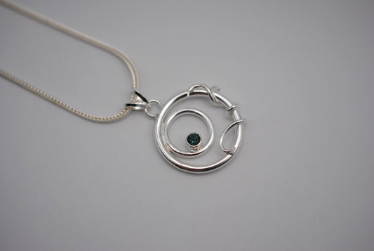 Indicolite Tourmaline on Circle and Vine Pendant Necklace on Fox Tail Chain