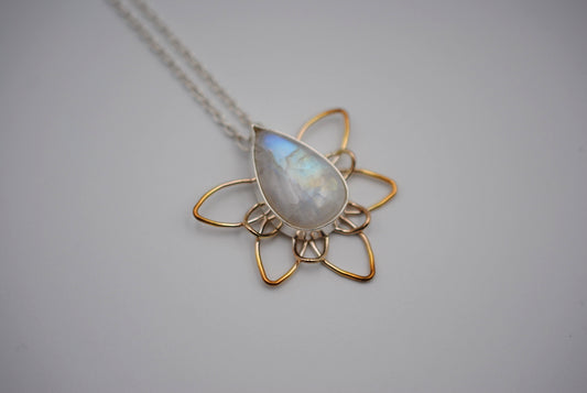 Moonstone Dahlia with Yellow Gold Ombre Pendant Necklace