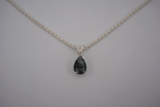 Moss Agate in Silver Setting Pendant Necklace on Wheat Chain
