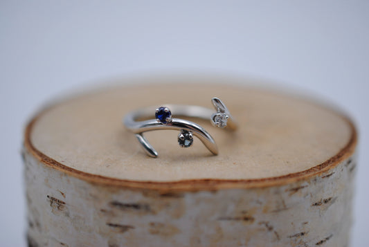 Sprout Rhodium Roots Ring with Blue Sapphire, Aquamarine, and Cubic Zirconia Gemstones