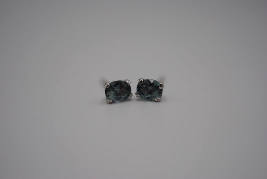 Post Earrings: Sapphires, Oval Cut, White Gold