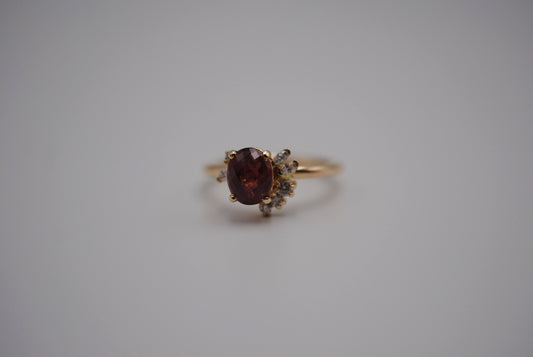 Ruby Ring: Oval Cut, Diamond Cluster, 14K Yellow Gold