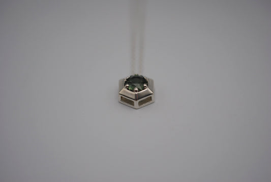 Sapphire Necklace: Round Cut, Silver Hexagon Setting, on Cable Chain