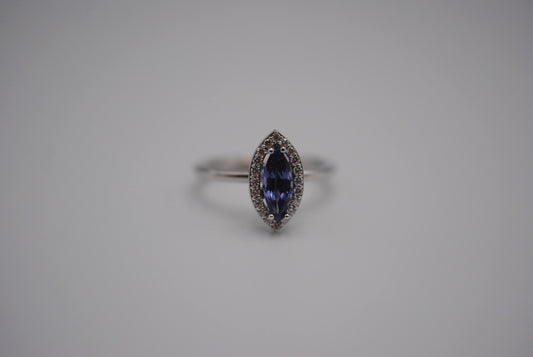 Sapphire Ring: Marquise Cut, Diamond Halo, White Gold