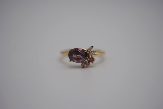 Sapphire Ring : Oval Cut, Diamond Cluster, 14K Yellow Gold