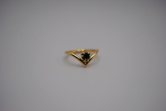 Sapphire Ring: Trillion Cut, Chevron, Yellow Gold Fill