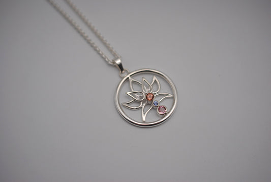Indicolite Tourmaline and Nigerian Sapphire Lotus Pendant Necklace on Wheat Chain