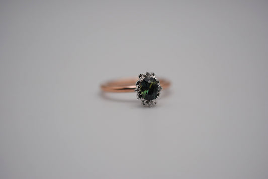 Oval Nigerian Sapphire on Rose Gold Band in Vintage Diamond White Gold Setting Ring