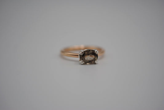 Diaspore Ring: Oval Cut, Yellow Gold Fill Band, East-West Silver Setting