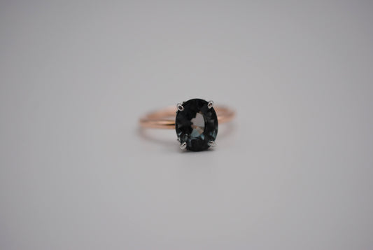 Tourmaline Ring: Oval Cut, White Gold Ornate Setting, Rose Gold Fill Band