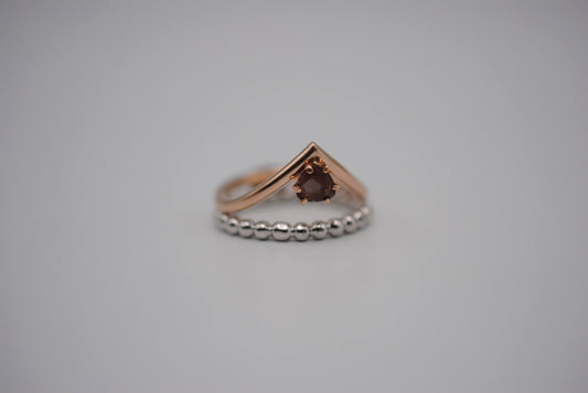 Trillion Oregon Sunstone on Rose Gold Chevron Band in Rose Gold Setting Ring with Bubble Stacker