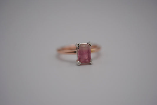 Tourmaline Ring: Emerald Cut, Rose Gold Fill Band, Silver Double Prong Setting