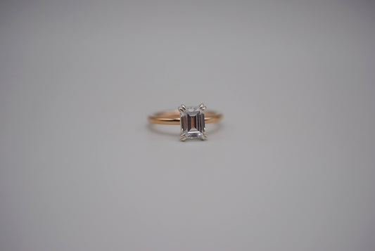 Cubic Zirconia Ring: Emerald Cut, Yellow Gold Fill, Silver Setting