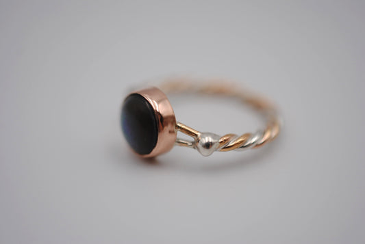 Alexandrite Ring: Trillion Cut, Rose Gold Fill Chevron Band, Silver Setting