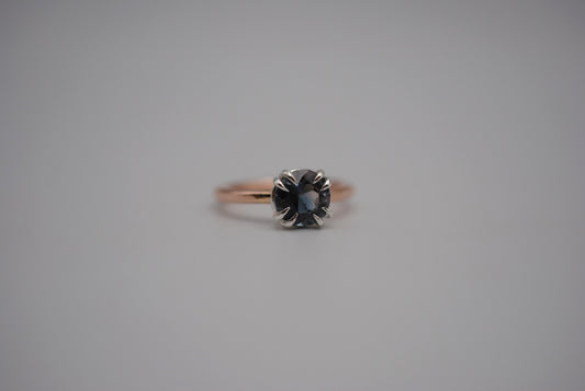 Round Nigerian Sapphire on Rose Gold Bypass Band in Silver Setting Ring