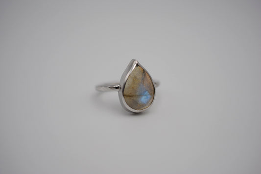 Labradorite Silver Textured Band with Bezel Setting Ring