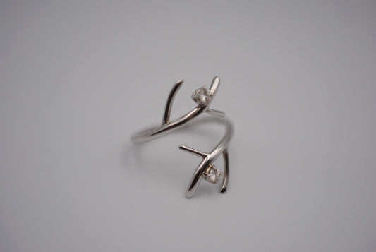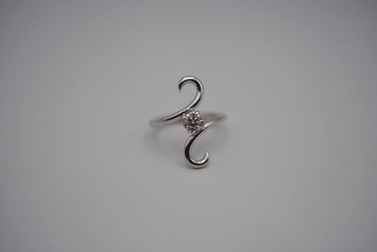 Moissanite Ring: Round Cut, Bypass, Rhodium Finish