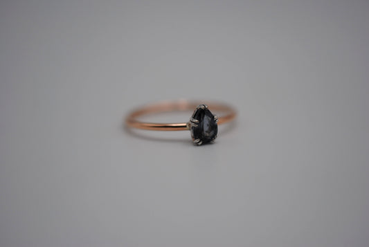 Pear Indicolite Tourmaline on Solid Rose Gold Band with White Gold Prong Setting Ring