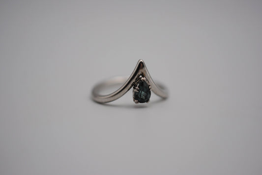 Pear Indicolite Tourmaline on Chevron Rhodium Band with a Solid White Gold Double Prong Setting Ring