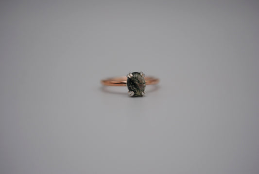 Moss Agate Ring: Oval Cut, Rose Gold Fill Band, Silver Double Prong Setting
