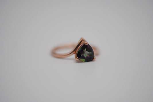 Alexandrite Ring: Round Cut, Bypass, Rhodium Finish