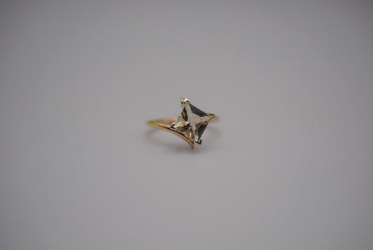Oregon Sunstone Ring: Princess Cut, Bypass, Yellow Gold Fill