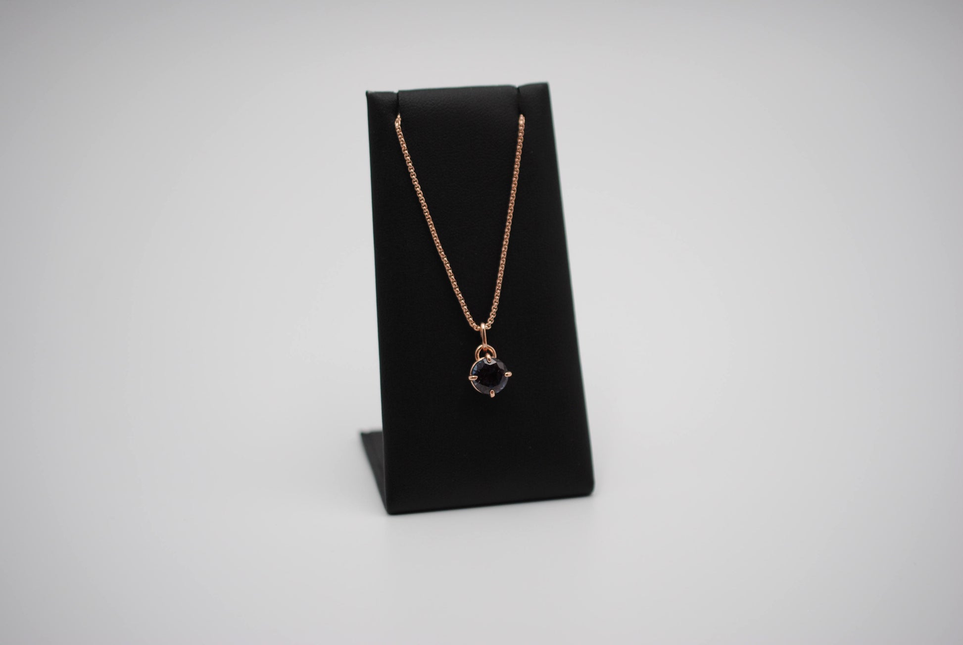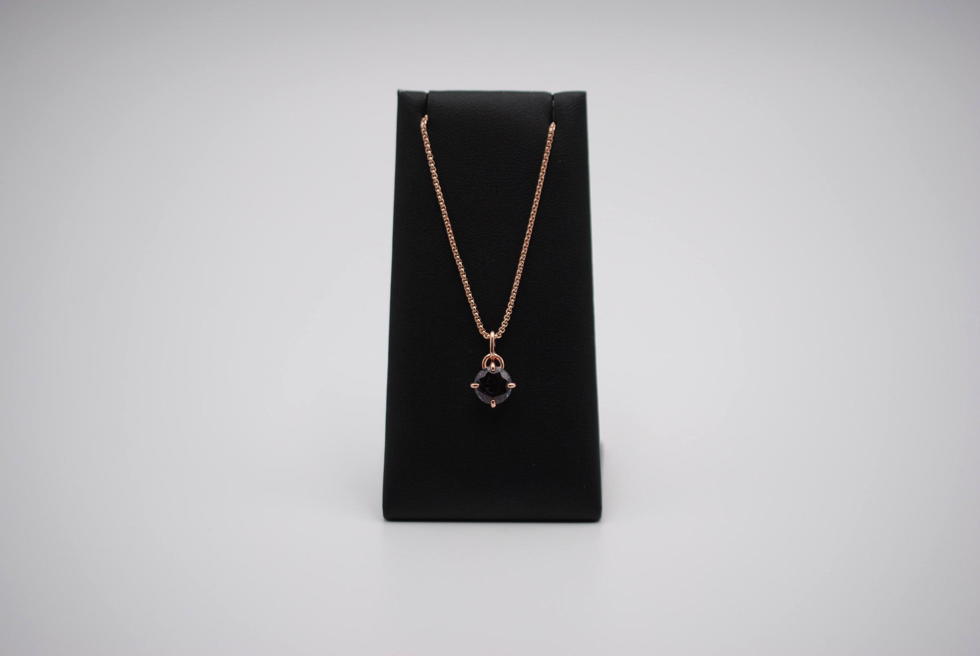 The pendant comes on an 18in rose gold fill rounded box chain. Other chain options are available.